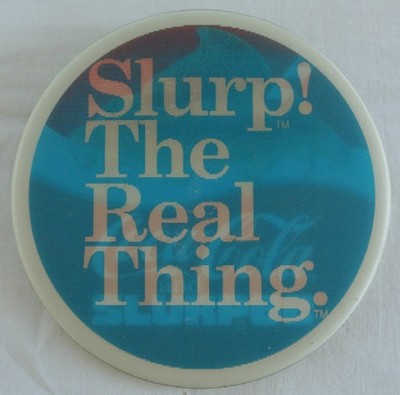Title (ebay affiliate link): Varying View Pinback Button....Slurp The Real Thing.....Coca-Cola & Slurpee