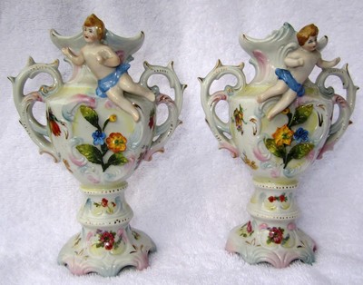 A VERY FINE PAIR OF DERBY FIGURAL VASES 6 IN X 4.5 INCHES.N38