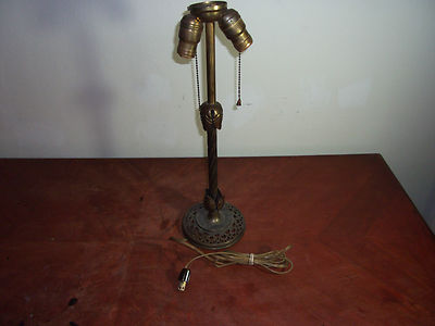 VTG METEOR Cast Iron Ornate Slag Glass Dual Lamp Base w/Chains/Cap/