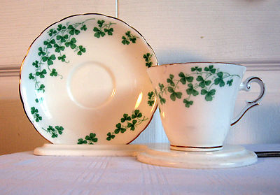 Title (ebay affiliate link): VINTAGE Wellington TEA CUP & SAUCER Bone China -- Shamrock - Glover