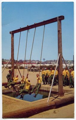Swing Over Pit, San Diego Marine Recruits CA 1950s