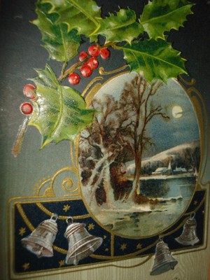 Title (ebay affiliate link): WINSCH BACK Vintage Old Holiday Christmas postcard Night Scene Silver Bells Moon
