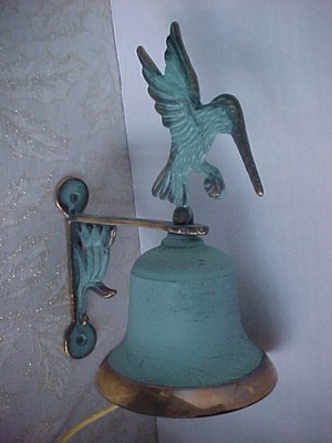 Title (ebay affiliate link): SOLID BRASS WALL MOUNT GARDEN HUMMINGBIRD BELL ANTIQUE GREEN CAST IRON CLAPPER