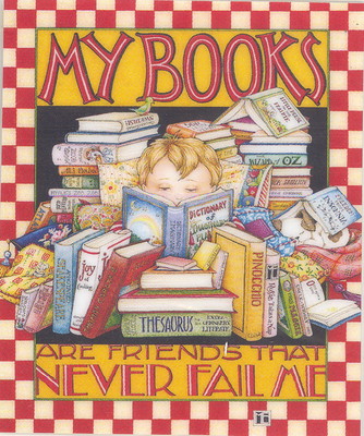 Title (ebay affiliate link): MY BOOKS ARE FRIENDS-Handcrafted Fridge Magnet-Art by Mary Engelbreit