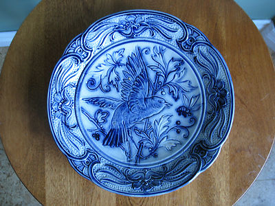 Title (ebay affiliate link): ANTIQUE MARKED FLOW BLUE PLATE WITH INCISED AND RELIEF DECORATED BIRD