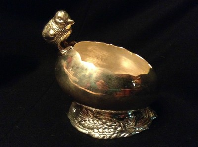 Title (ebay affiliate link): Victorian Spoon Warmer/ Sterling Silver Plated Ostrich Egg with Chick