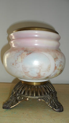 ANTIQUE/VINTAGE PAINTED MAGNOLIA & ECENE KEROSENE OIL LAMP BASE