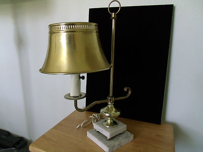 VINTAGE ANTIQUE BRASS LAMP BRASS SHADE MARBLE BASE ITALY