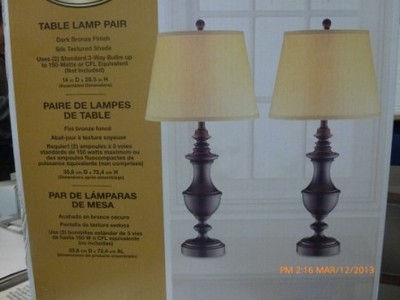 Title (ebay affiliate link): pair 2 Hampton Bay table lamps Dark Bronze metal w/ shades living room NEW