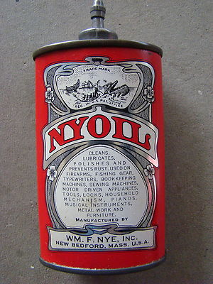 Vintage Wm F Nye Inc NYOIL 3 1/4oz Metal Oil Oiler Tin