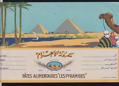 EGYPT 1946 ADVERT. LABEL PATES ALIMENTAIRES " LES PYRAMIDES "