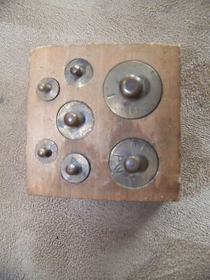 VINTAGE BRASS WEIGHTS WITH HOLDER