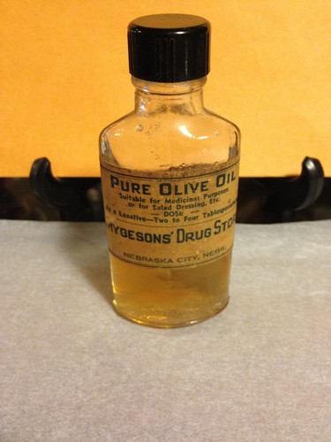 Title (ebay affiliate link): Antique Medical Olive Oil Thygesons' Drug Store Nebraska City