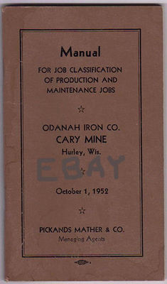 Title (ebay affiliate link): Odanah Iron Co. Cary Mine, Hurley WI. Pickands Mather & Co. Mining, Miners