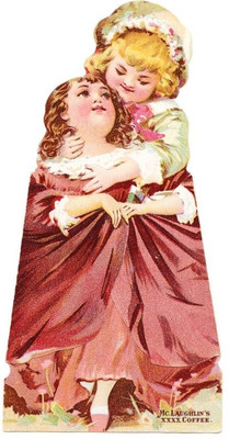 McLaughlins Coffee Die Cut Trading Card Paper Doll Girls Hidden White Kitten Vtg
