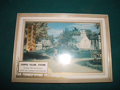 Vintage Advertising Thermometer Picture Campau Filling Station Gasoline Oils ad