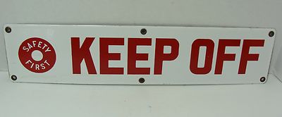 Title (ebay affiliate link): OLD RED WHITE SAFETY FIRST KEEP OFF PORCELAIN MINING MINE SIGN
