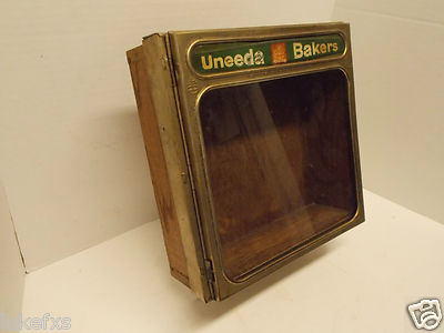 Title (ebay affiliate link): Antique UNEEDA BISCUIT Co. Brass & Glass Box Cover Display