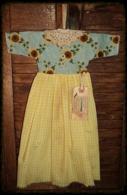 GRUNGY PRIMITIVE WALL~CUPBOARD DOLL DRESS PRIM BLUE SUNFLOWER~FOLK ART~DECOR