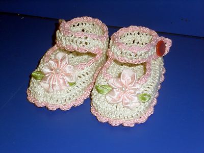 Title (ebay affiliate link): CROCHET BABY GIRL DOLL BOOTIES SHOES ANTIQUE WHITE & PINK MJ
