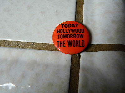 vintage 60's pinback "Today Hollywood Tomorrow The World"