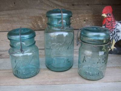 Title (ebay affiliate link): 3 Antique Blue Mason Jars w/Glass Lids Dated Early 1900's Lot