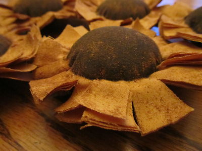 Title (ebay affiliate link): PRIMITIVE GOLD SUNFLOWERS BOWL FILLERS, TUCKS ORNIES