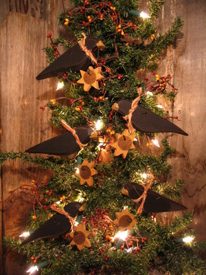 Title (ebay affiliate link): * 5 Primitive Farmhouse Garden CROWS Sunflower Red Ticking Ornies Ornaments