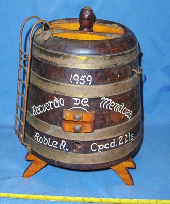 Title (ebay affiliate link): Vintage 1959 Heavy Oak Handmade Beehive Cask Barrel Decanter Recuerdo de Mendoza