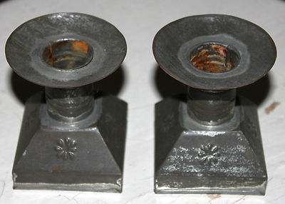 Title (ebay affiliate link): Primitive Sand Weighted Tin Candle Holders pair vintage? Antique? Naive
