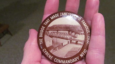 Title (ebay affiliate link): Pinback Photo Button Pin 1900 Zanesville Ohio Bridge Cyrene Commandary No. 10