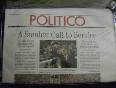 Obama Inauguration Politico newspaper - 1/21/2009 "A Somber Call to Service"