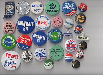 Title (ebay affiliate link): Set of 29 Various Political Pinback Button Cello Badges