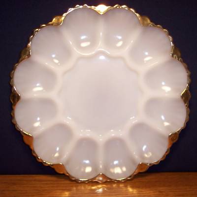 Vintage Milk Glass Trimmed Gold Egg Plate Platter