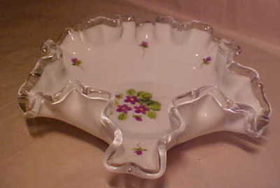 OLD FENTON MILK GLASS VIOLETS IN THE SNOW CANDY BOWL