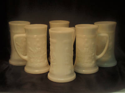 Match Set of 6 White Milk Glass Beer Mugs Tavern Steins