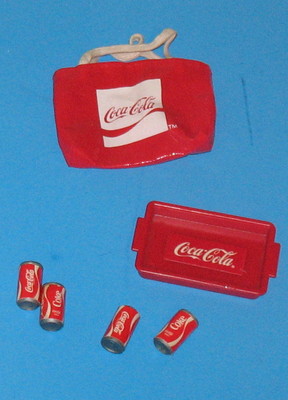 Title (ebay affiliate link): Barbie DOLLHOUSE Size COCA COLA Tray & 4 Cans of Soda (Plastic/Paper) & Sack HTF