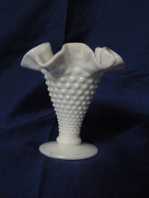 Fenton MIlk Glass Hob Nail Pattern Mini Vase Ruffled