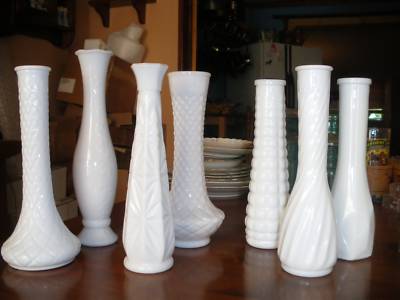 SET OF 7 MILK GLASS VASES 2 EO BRODY 2 HOOSIER GLASS
