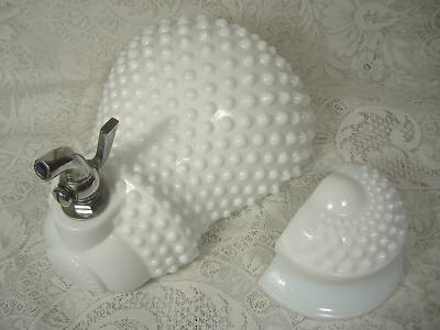 VINTAGE FENTON MILK GLASS HOBNAIL LAVABO TOP 2 PIECES