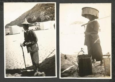 China,Hongkong,Native Beggar & Female,2 x Antique Small Sized Real Photo Images!