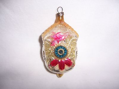 Vintage Germany Celluloid Cuckoo Clock Ornament