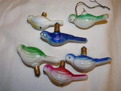 6 Antique Christmas Tree Bird Milk Glass Light Bulbs