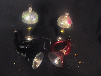 Title (ebay affiliate link): 4 ANTIQUE ORNAMENTS-GLASS-CHRISTMAS-HORNS-LAMPS-BIG-NR!
