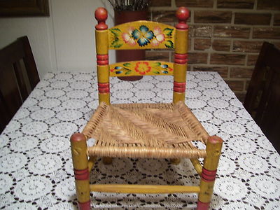 Title (ebay affiliate link): VINTAGE HAND PAINTED YELLOW & RED FLORAL PEGGED CHILD'S CHAIR