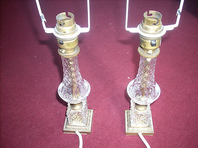 Cut glass/crystal and Brass Pair of Table Lamps