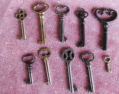 LOT OF 10 ANTIQUE & VINTAGE SKELETON KEYS - FOR FURNITURE, DOORS, JEWELRY