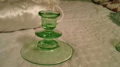 Title (ebay affiliate link): Depression Glass Candlestick Holder in Bright Green