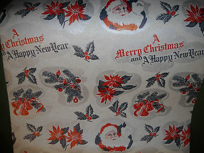 VINTAGE CHRISTMAS STORE WRAPPING PAPER SILVER RED BLUE WW2 GIFT WRAP - 2 YARDS