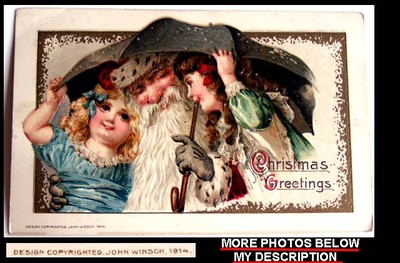 Title (ebay affiliate link): ANTIQUE 1914 Xmas Postcard JOHN WINSCH Signed SANTA CLAUS Under UMBRELLA Child